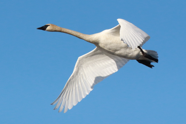 As if it was checking out the 3 amigos floating in a pontoon below, a graceful Trumpeter Swan flew overhead and into the late afternoon sunlight in central Minnesota last fall. Among the largest and heaviest of all flying birds, Trumpeters are the largest of the world’s 7 species of swans (October photo; 450mm zoom lens, f-8 aperture, 1/4000 shutter speed, 800 ISO).