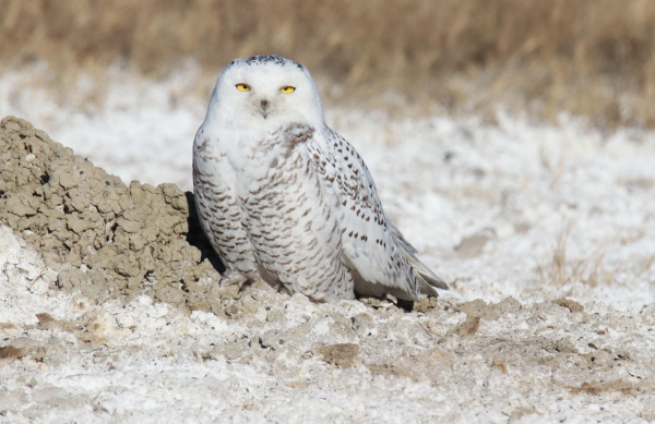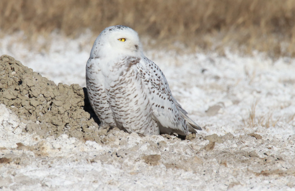 The initial excitement of seeing a Snowy Owl was eclipsed by the chance to take photos such as this in full afternoon sunlight – after hiking around a low hill to get into position with the sun at my back and my shadow pointing toward the young owl (600mm zoom lens, f-8 aperture, 1/4000 shutter speed, 800 ISO).