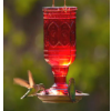 Hummingbirds are nature's gems, so it's natural to attract more hummingbirds with a Jewel Glass Hummingbird Feeder from More Birds. The Jewel's vintage designed 8-sided red glass nectar bottle holds 20 ounces of sugar-water and features elegant hummingbird motifs on the bottle that add a hint of historic beauty to your yard. With polished copper accents, "the Jewel" has a durable metal nectar basin fitted with 5 red flower-shaped feeding ports. The wide bottle opening makes it easy to fill, and the feeder can easily be taken apart for convenient cleaning.