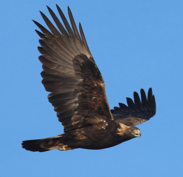 Three photo episodes among the many I enjoyed with birds of prey stand out for 2019. A pair of dark morph Harlan’s red-tailed Hawks provided memorable photos, and two other raptors – a Golden Eagle and a Merlin – graced me by circling low around me as I stood in amazement and photographed in earnest as they mysteriously focused on me as what? A thing of surprise or attraction? A subject of curiosity with my telephoto lens pointing at them and spinning as I followed their flight as they passed into and through the best light time and time again? Their interest definitely wasn’t random, considering the Golden Eagle circled three times, and the Merlin was an overachiever as it circled no less than nine times! All I can say is: “Thank you very much! Let’s do it again!”