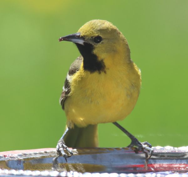 One more ingredient is important for orioles, hummingbirds, and all birds – water! Fresh Water will attract a greater variety of birds than any other feeding station ingredient, and a stylish bird bath can add a focal point to your yard or flower garden. The key to providing water for birds is to keep the depth of the water less than 2 inches (1 inch is best), which permits small birds like goldfinches and warblers to stand in the water to bathe. Too often, people fill a birdbath's basin to full capacity, which effectively eliminates it as a bathing source. You can also attach a sprayer to your birdbath, which is a plus for hummingbirds.