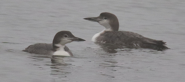 As you know, I emphasize that I almost never bother to go birding if I don’t have adequate sunlight, but Thursday I felt the need to survey of the birds in the area at the mid-point of October. With overcast sky to begin with, the addition of ever-thicker fog made photo conditions almost impossible, but sometimes we all need a little ‘almost impossible’ in our lives, if only to make us appreciate the photo ops when good sunlight conditions prevail. Overall, the fog also made the photos a less than sharp, but that takes nothing away from the exciting experience of spending time with a pair of loons so close to home. The rarity of this loon sighting, and the chance to photograph them created a magic half-hour in the presence of the pair of Dakota Common Loons.