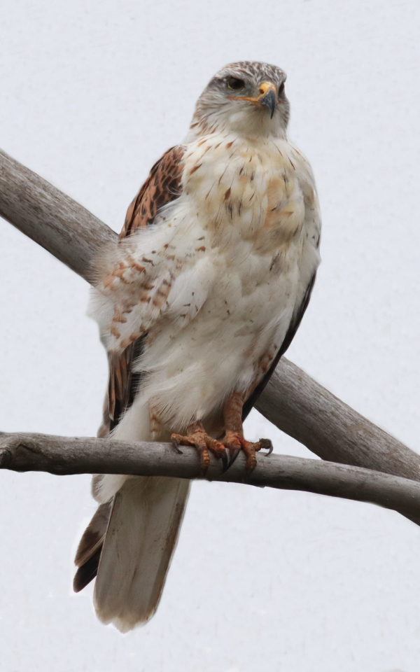 The surprise of finding a male Ferruginous Hawk perched on the edge of a small grove of cottonwood trees near a nest visited by a pair of Ferruginous Hawks 6 months earlier was the initial highlight of the day. The subdued lighting created by overcast conditions underlines the importance of the quality and direction of lighting on any photograph (600mm zoom lens, f-7 aperture, 1/1600 shutter speed, 1600 ISO).