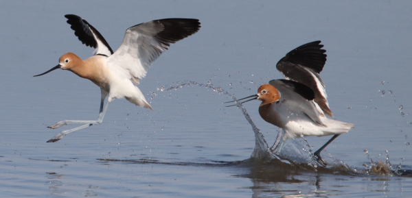 Always alert for the possibility of action photos, while taking a photo of a feeding American Avocet a second avocet landed and began chasing the first, providing the chance for an action sequence. Adding to the flow of this photograph, the stopped action of water makes this image truly unique. While it’s easy to imagine the half-circle of water is following the action of the avocet on the wing, the splash line was actually created by the running steps of the chasing avocet (May photo; 600mm zoom lens, f-8 aperture, 1/4000 shutter speed, 800 ISO).