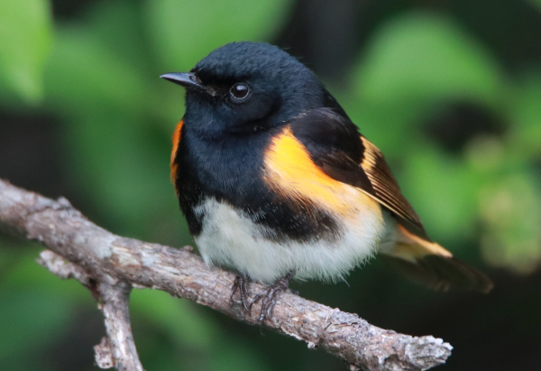 Male American Redstarts were especially active the 4th Friday of May at nearby Melody’s Grove, along with an abundance of other warblers and songbirds during a migration stopover. When you see this close view and the fine details of the redstart in this photo, keep in mind how small this enchanting bird really is (May photo; 600mm zoom lens, f-6 aperture, 1/1000 shutter speed, 1600 ISO).
