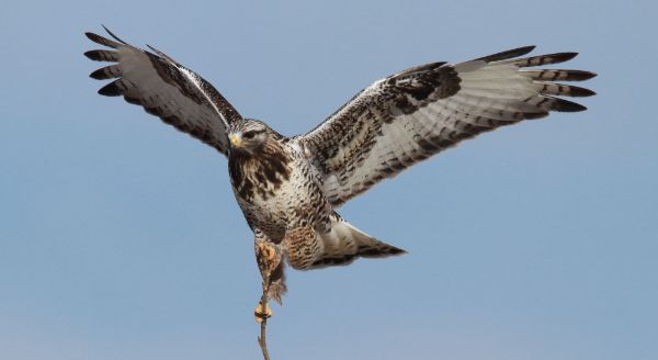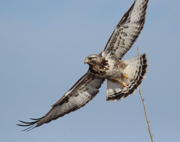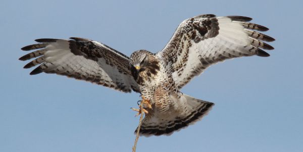 The first series of photographs was taken as the adult male Rough-legged Hawk was landing on the top-most branch of a young cottonwood tree – not an easy act as the landing required a considerable balancing act at the end of the limber branch (600mm zoom lens, f-8 aperture, 1/4000 shutter speed, 800 ISO).