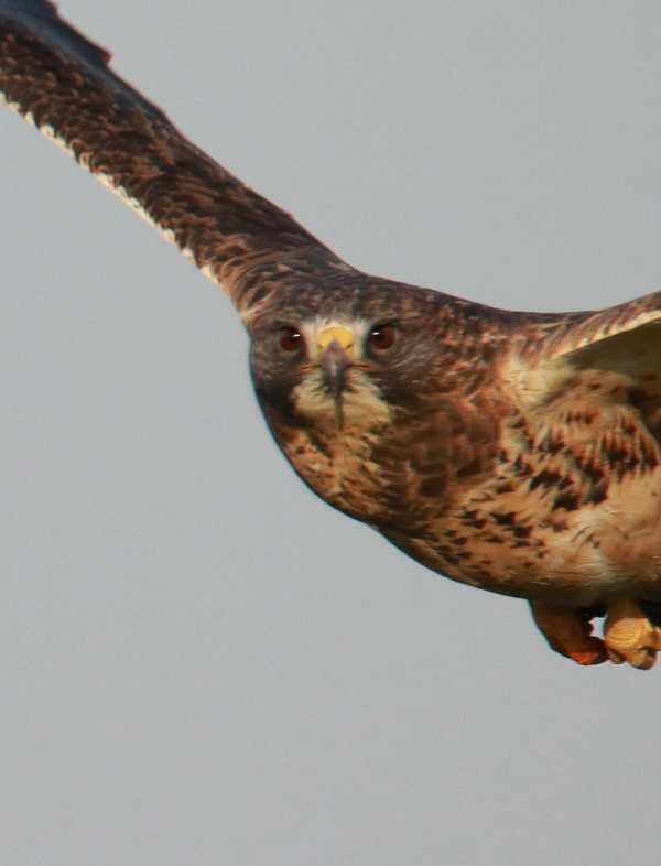 A head-on view as a Swainson’s Hawk flew toward me just a mile south of home.