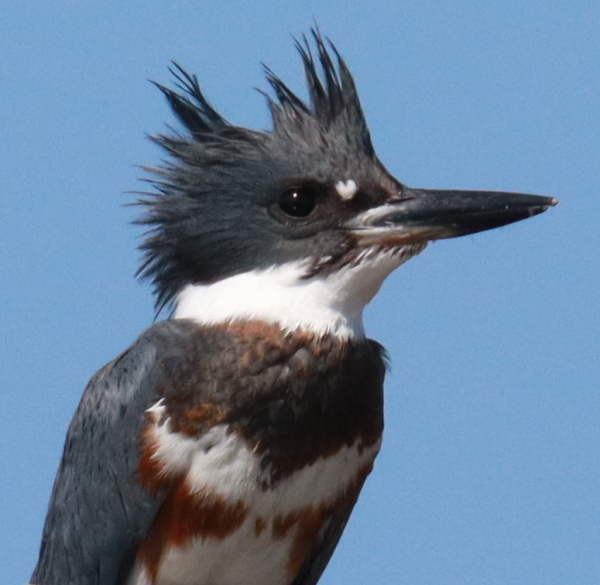 A number of Belted Kingfishers were present in the area last week, but only an obliging female provided photo opportunities, including a close portrait.