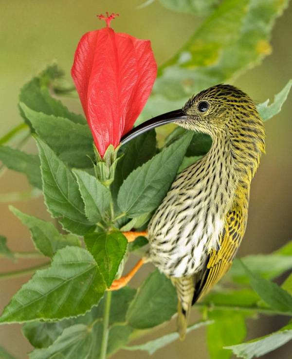 As evidenced by this Streaked Spiderhunter, this little-known group of birds possess a special attraction all their own, especially when observed feeding in the tropical forests from India to southeast Asia (photographed in Malaysia by Malini Shanmaganathan).