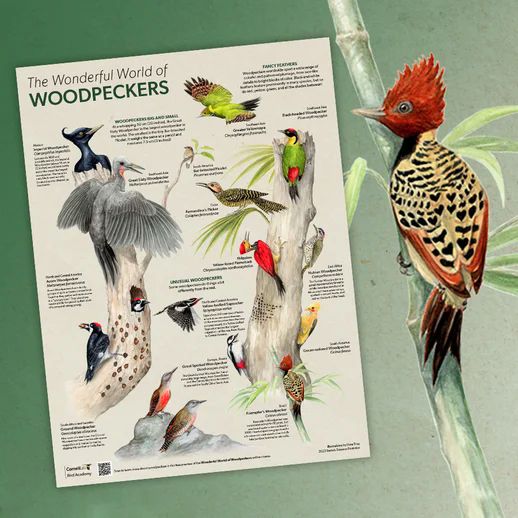 Celebrate the diversity and wonder of woodpeckers with a Free Woodpecker Poster that is beautifully illustrated and full of fun facts at Wonderful_Woodpecker_Poster_02012024.pdf. You can download and print a copy, or keep the .pdf for reference in your personal files.