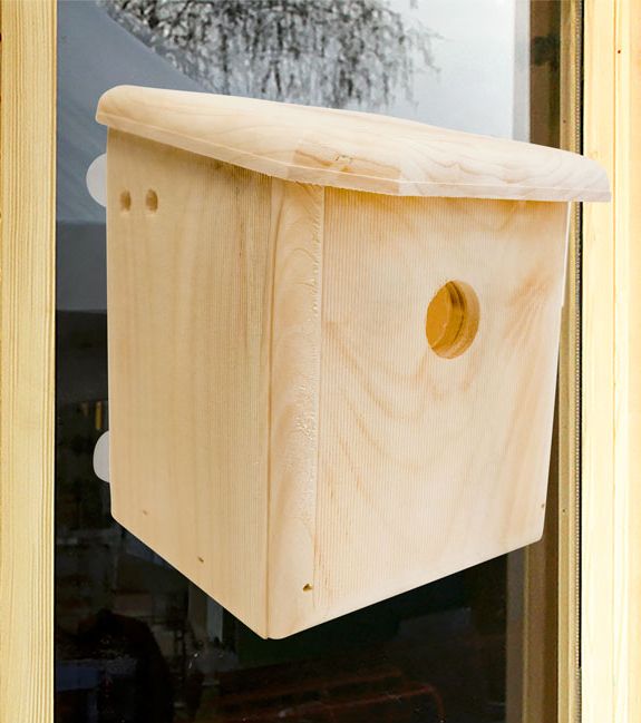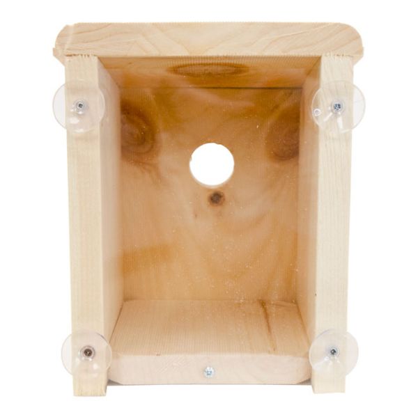 This Window Nest Box measures 8¾ inches high x 7 inches wide x 7½ inches deep, just right for small cavity nesting birds. Its downward-sloping roof sheds rain, and angled gaps at the base of the birdhouse provide added drainage to ensure the inside remains dry. A pair of ventilation holes on each side of the nest box provide air flow, and it's easy to access the interior when it's time to clean it after nesting is complete – just remove the single screw to detach the clear plastic back panel.
