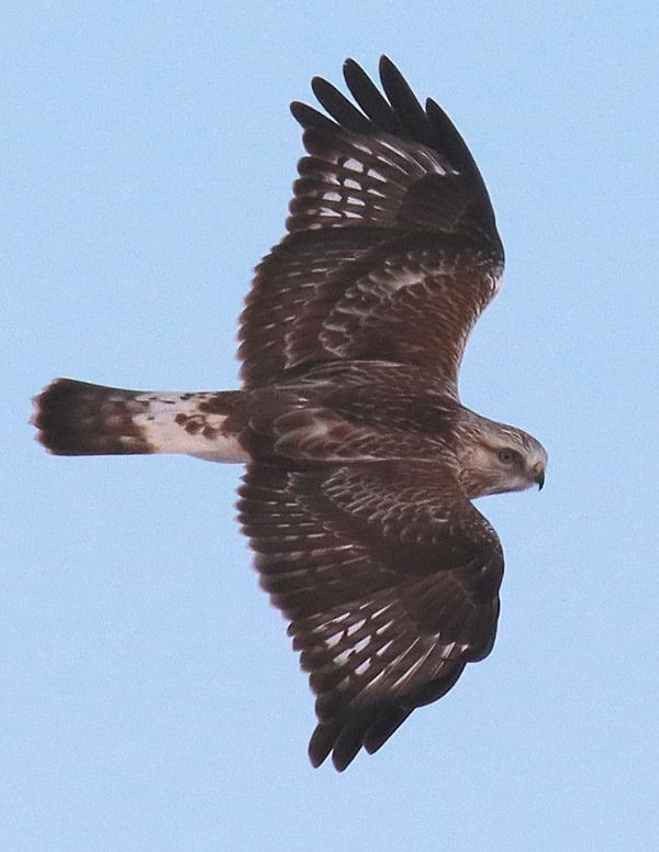 Thursday I checked back on the owl, but didn't see any action in the area, so extended my drive a few more miles to the east. Almost at the end of my intended drive, a woodpecker flew across the road in front of me, and I was surprised to see it was a Northern Flicker, a first for the year, a female. And when I did reverse course, I observed another woodpecker in flight – a Hairy Woodpecker about 100 yards from where the flicker landed a few minutes before. Next, flocks of Sharp-tailed Grouse materialized in flocks of 19, 14, and 31. And the icing on the cake was a young Rough-legged Hawk hovering at a couple spots as I watched it until it was 3/4-mile away. Birding opportunities appeared to be rebounding a bit more each day after last week's storm. And I know that was a tiny blizzard compared to what happened in northeastern states Monday – my best wishes are sent your way!