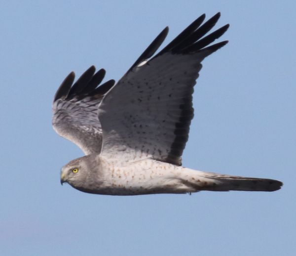My hopes for an especially early spring were smashed last week after temperatures that peaked at 55 and 57 degree days were smashed by an especially wintery blizzard Wednesday that covered the landscape with bright white snow that blew horizontally and appeared to chase all the migrants beyond my expansive birding reach. But among continuing strong winds and blowing snow Thursday I was surprised to see a male Northern Harrier on the hunt above the highway 20 miles northeast of home on my way to Fargo. On my way back from a birding drive to the south Thursday, another silver hawk crossed the road ahead of me – a male Northern Harrier that seemed to be hunting but was also riding the wind south in earnest.