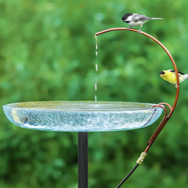 Attract more birds to your existing birdbath by adding an easy to set up Universal Water Dripper that fits most birdbaths. It's been proven that the sound of water attracts more birds than stagnant water, so a Water Dripper is always a good addition to your birdbath. The copper-colored stainless steel Universal Dripper from Duncraft won't rust, and the plastic Y-valve connects to any outdoor faucet ad attaches to the dripper with 50 feet of tubing. The Water Dripper stands 11 inches tall and has a 2-inch hanger opening where the dripper attaches to a birdbath rim.