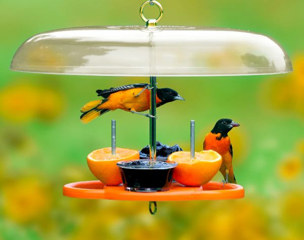 When shopping among the variety of oriole feeders, take a second look at the Duncraft Oriole Fruit & Jelly Feeder with a clear plastic roof. Also consider the BirdsChoice Oriole Fest Feeder, plus the other 58 oriole feeders. When selecting an oriole feeder, keep in mind that not all orioles, regardless of species, feed on sugar-water nectar. But grape jelly and sliced oranges are true oriole magnets that will attract orioles to your yard, business, school, or church.