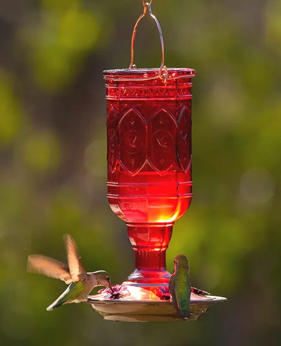 "The Jewel" features a metal perching ring that provides hummingbirds a place to perch while feeding, and there is a built-in metal hanger. To learn more about the Jewel Glass Hummingbird Feeder from More Birds, see More Birds® Jewel Red Glass Hummingbird Feeder | 76IN