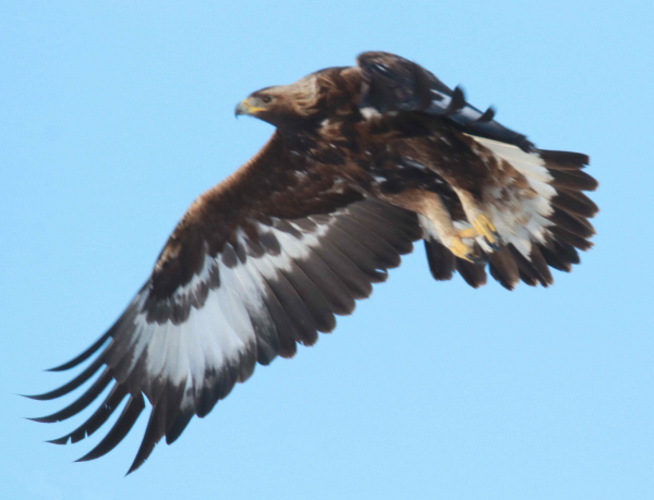 A surprise second-year Golden Eagle showed especially extensive white coloration in the flight feathers of its wings and tail. An adult Golden was observed during the previous birding drive.