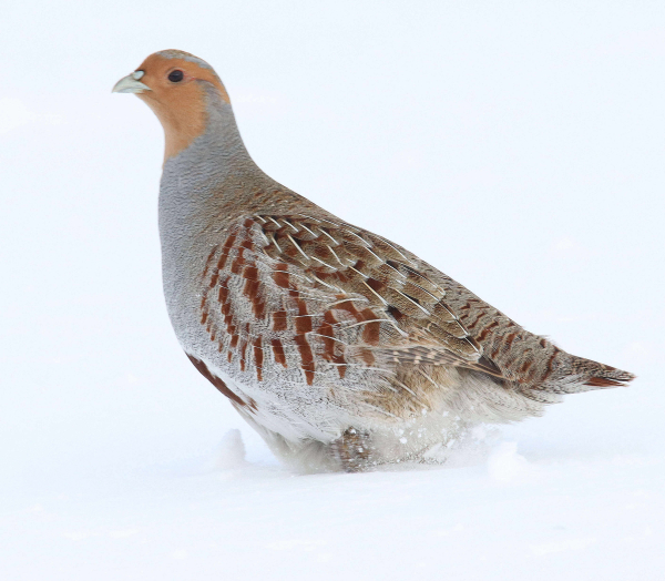 Everyone is welcome to join a Christmas Bird Count team. Maybe you will even see a new bird in the process, while interacting with fellow birders (Gray Partridge photo by Paul Konrad).
