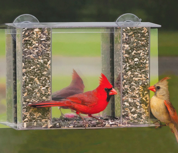 A few window feeders have a mirrored back, which provides a one-way view so you can see the birds, but the birds can’t see you. This can put the birds more at ease about any movements made indoors that might alarm feeding birds.