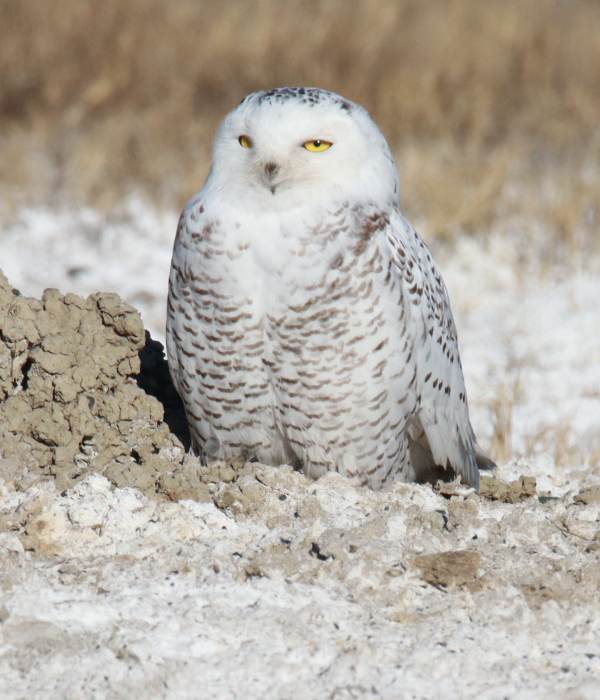 Yes! And could I get into position to photograph it? The Snowy had its shadowed back facing toward the roadway, so I would need to approach it on foot to be in position with the sun at my back and illuminating the white owl. The white owl was perched on white bare ground on the edge of a small drying alkali marsh, and a small hill gave me cover to get within camera range, so I gave it a try. As I rounded the hill and saw the owl in perfect light I hoped it would trust me from a distance. But its attention was elsewhere, and with its head turned it hadn’t seen me yet, which gave me a moment to get into position for a few photos, which I began to take as it turned its gaze toward me, then away again – WoW! I’ll share the rest of this surprising story and more photographs in the Bird Photography feature at the end of this issue – hope you like it.