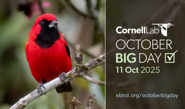 The October Big Day logo features a Vermillion Tanager photographed by Ben Lucking.