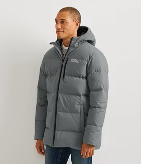 The Men's Essential Down Hooded Parka is available in 4 colors and is also significantly down-priced.