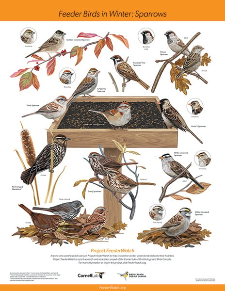 In an effort to encourage birders to sign up early for the FeederWatch season, you can get a newly published Native Sparrow Identification Poster in addition to the Project’s standard research kit, but only if you join between now and October 8th.