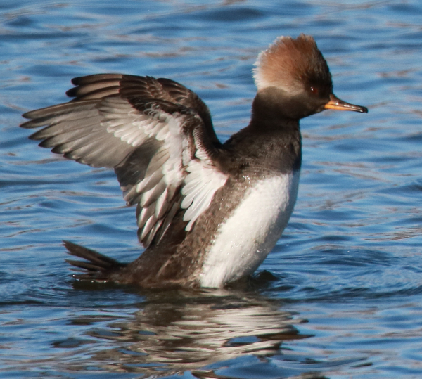 A pair of interesting sightings included seeing 5 female Hooded Mergansers separated from 5 males about 2 miles apart.