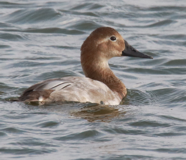 The telltale slope of the female Canvasback’s head toward its large bill is an obvious indicator of the species in the field.