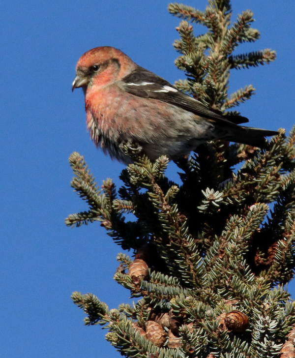 Crossbills are an interesting group of finches, as represented here by a male White-winged Crossbill. Will you have a chance to encounter White-wings and other finches this winter? (Photos by Paul Konrad.)