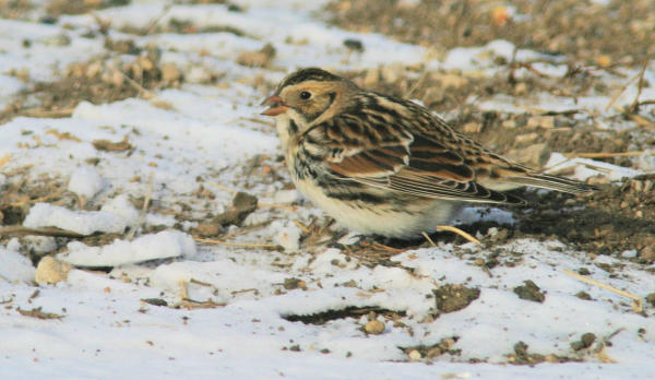 Migration was very quiet Tuesday through Thursday, and that was the theme across the eastern third of the state as I drove to Fargo – just widely scattered Red-tailed Hawks to note. Friday showed more promise when I found a big flock of the first Arctic songbird migrants – about 70 Lapland Longspurs that were drinking in a small shallow wetland. It was interesting to see them fly up to the water, land on emergent sedges, drink quickly, then take flight, but circling back and repeating the action time and time again. No Snow Buntings among them, but these beautiful little Arctic-nesting songbirds can’t be far behind. Usually they form mixed flocks with the longspurs and are easily differentiated in flight and on the ground by their more extensive white plumage.