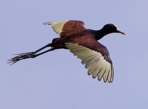 Normally found in wetlands in the lowlands of Mexico, Central America, and the larger Caribbean isles, birders delighted in seeing a rare Northern Jacana at Santa Ana Refuge in Texas last week (photo by Liam Wolff).