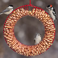 ![]() Duncraft Red Whole Peanut Wreath with a Downy Woodpecker, White-breasted Nuthatch, and Red-bellied Woodpecker in attendance. |