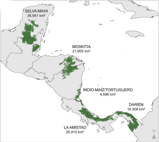The 5 Great Forests, located in Central America from southern Mexico to southern Panama (Biological Conservation).